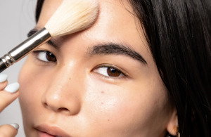 Prep skin so it feels hydrated but not slippery. Apply dewy products sparingly and keep luminosity to the high points of the face rather than everywhere. Avoid heavy buffing – pressing product into the skin gives a smoother result than swirling.