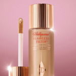 “Dab and bounce the sponge across your face for even coverage, blend well and check for any unevenness. If desired, set the foundation with translucent powder.”