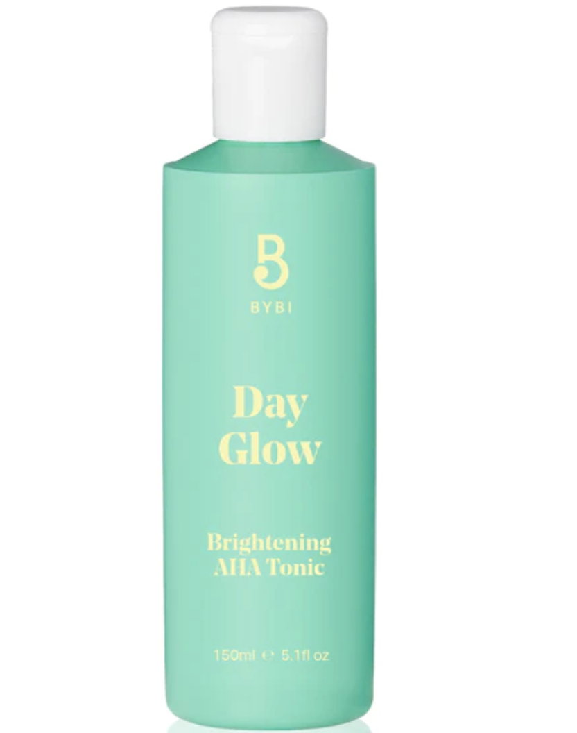 Try Day Glow Vegan Facial Tonic with AHA (£18 from Bybi UK /$17 from Bybi US), which is brightening and refining without being harsh on skin.