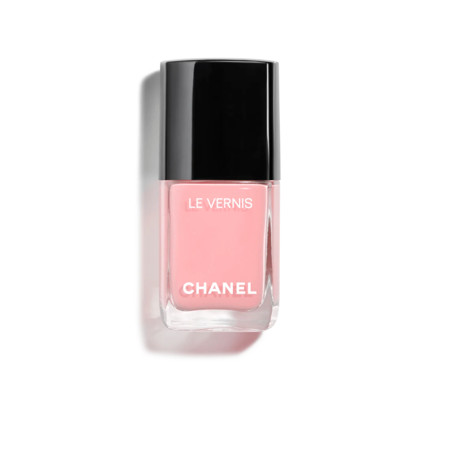 Goldstein says that by combining four drops of Chanel Le Vernis Skieuse (a soft petal pink), one drop of Chanel Le Vernis Diva (a bright, rapsberry tone), one drop of CHANEL Le Vernis Sun Drop (a classic coral), three drops of Chanel Le Top Coat (a clear gloss), the *exact* jelly pink shade was born.